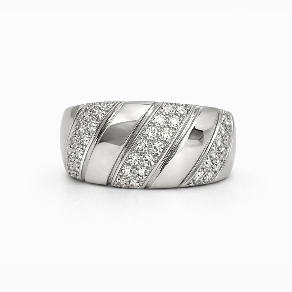 Anillo pavé de diamantes en oro blanco banda segmentada moderna