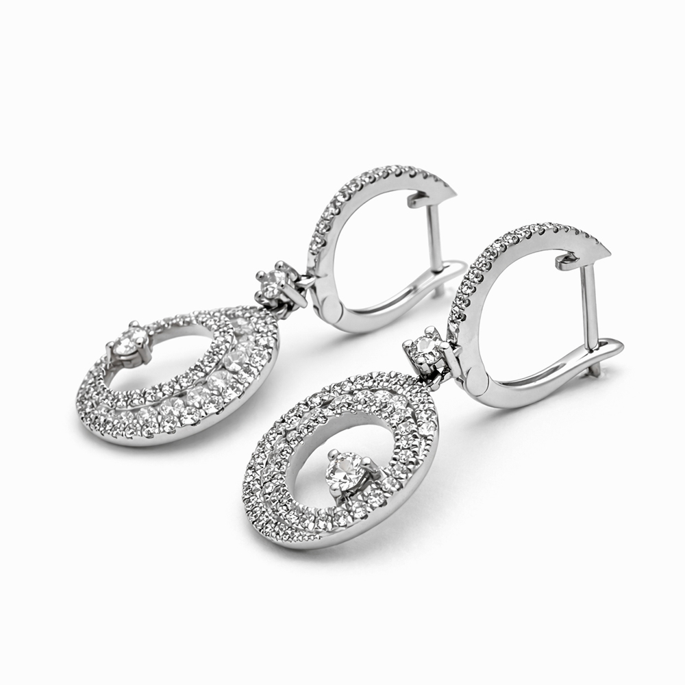 Aros oro blanco con diamantes diseño circular elegante