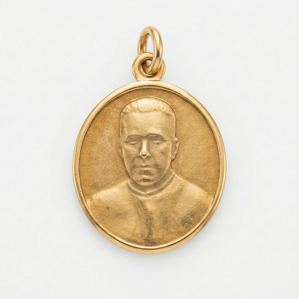 Medalla religiosa en oro con relieve retrato santo