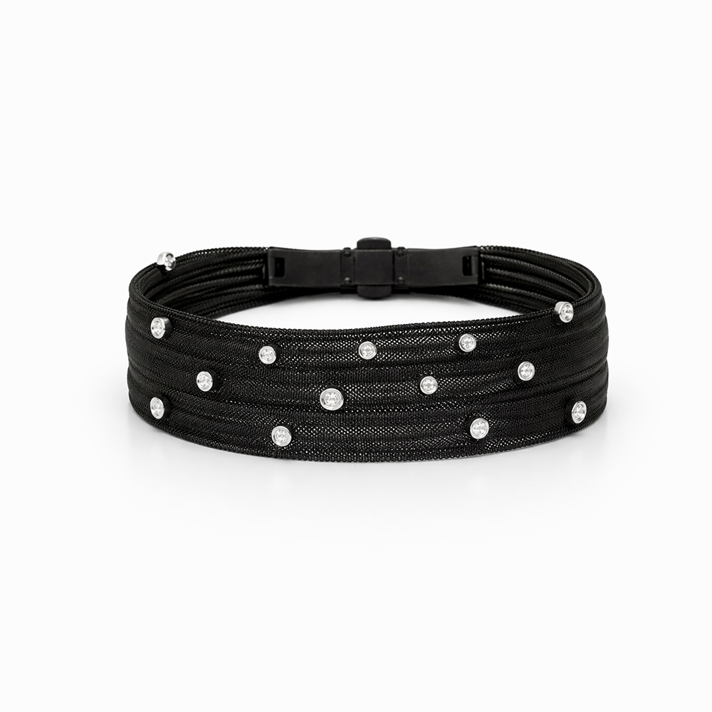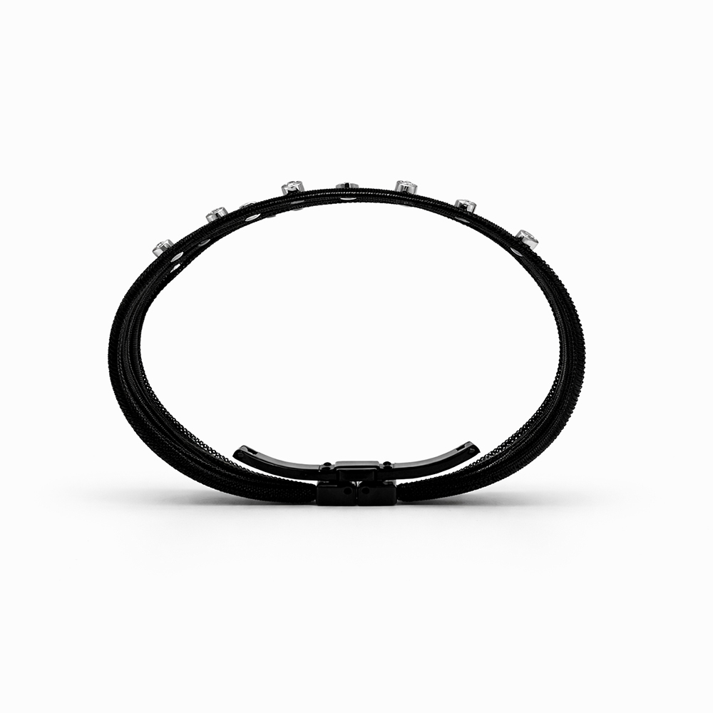 Pulsera negra con diamantes incrustados estilo malla elegante